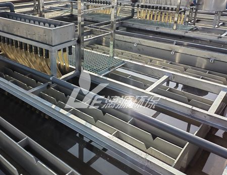 噴涂廢水處理工藝多采用“厭氧+好氧”組合工藝為主,在厭氧處理的微生物作用下將難降解的大分子有機物分解成小分子可溶性物質和氣態物質,達到去除有機物的目的;經過厭氧處理的廢水CODcr顯著降低,提高廢水中B/C比值,為后續生物處理的穩定運行提供保障。漓源環保在傳統厭氧反應器的基礎上開發了多種厭氧反應器,提高了污泥攔截能力、布水均勻,使得反應器處理效率得到提升,使厭氧后剩余污泥量少、性質穩定,可去除80~95%的有機污染物。